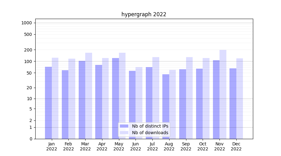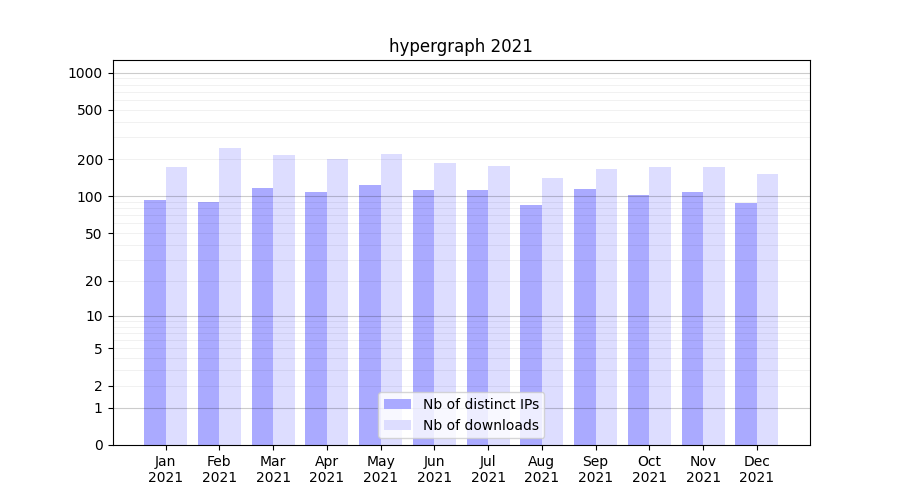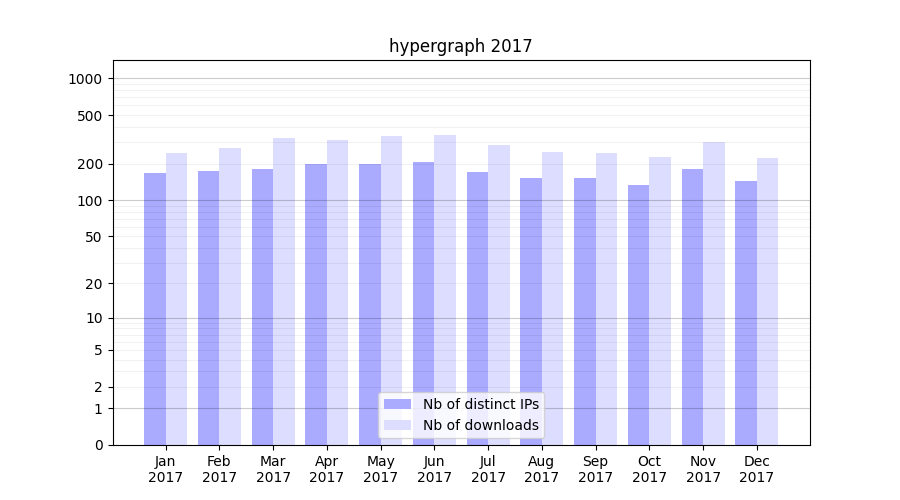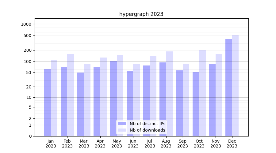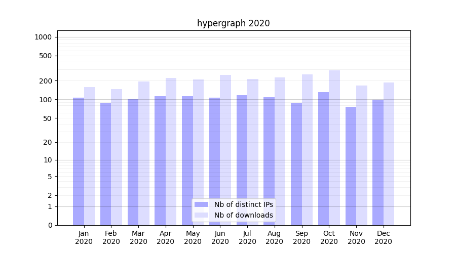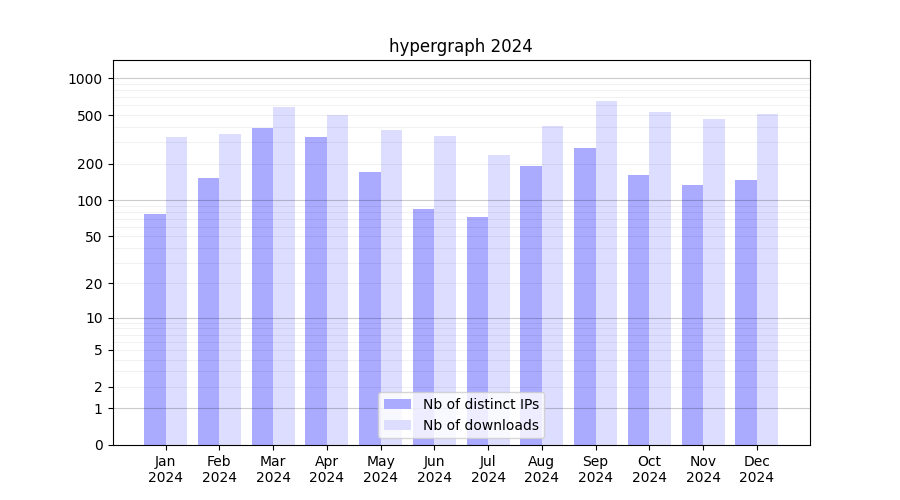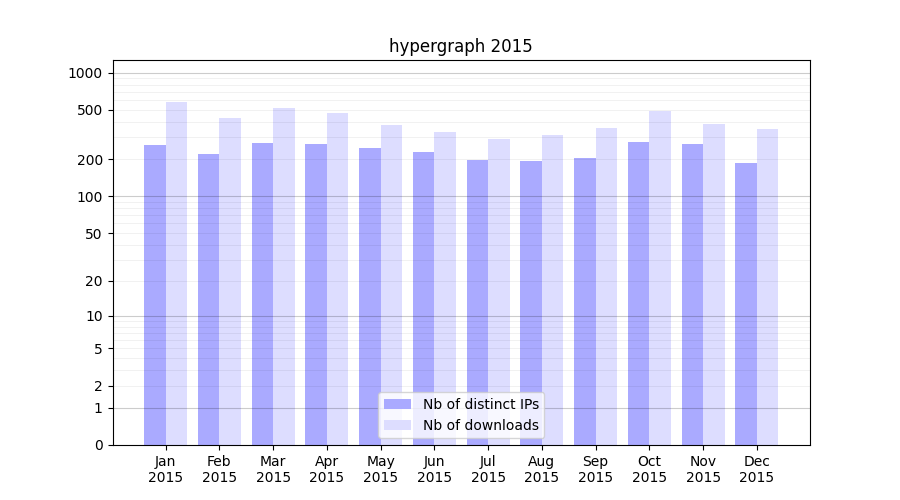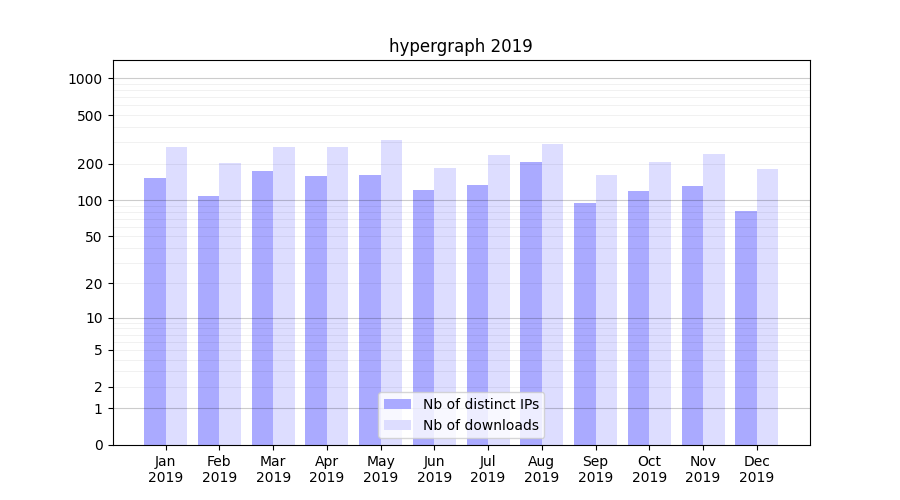 Number of downloads for software package hypergraph, year by year, from 2025 back to 2014 (years with no downloads are omitted):