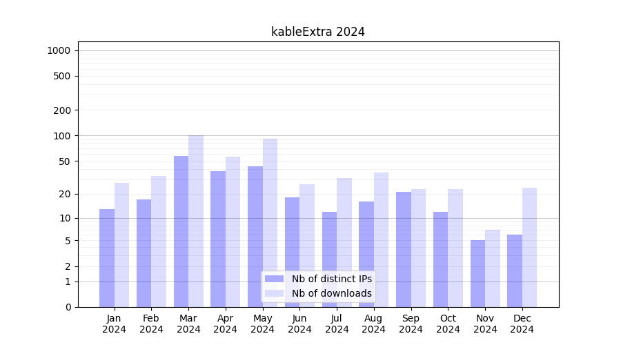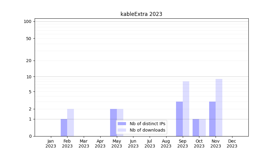 | Month | Nb of distinct IPs | Nb of downloads |