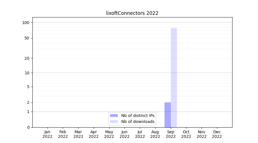 Number of downloads for software package lixoftConnectors, year by year, from 2025 back to 2014 (years with no downloads are omitted):