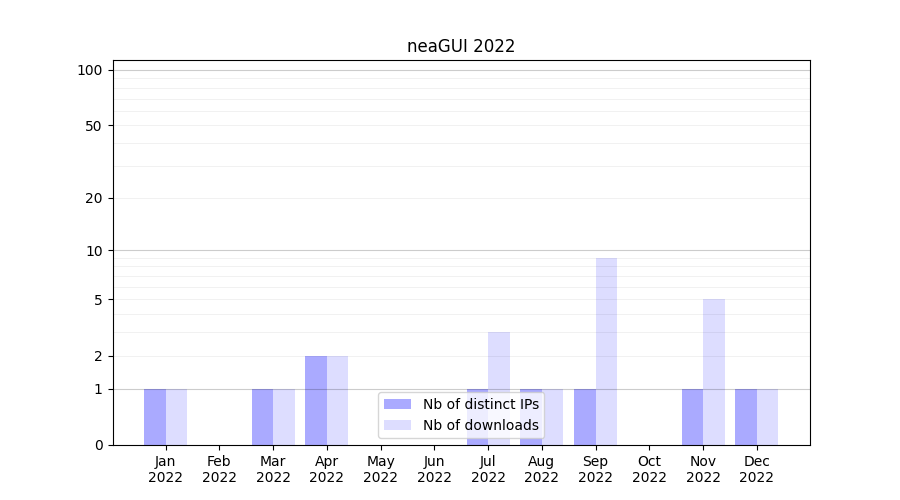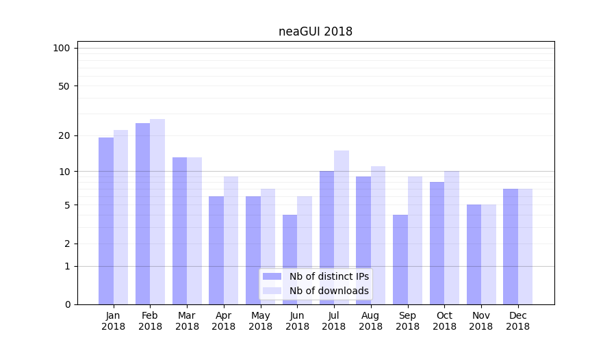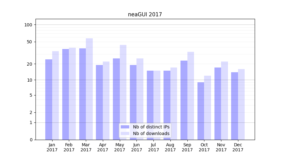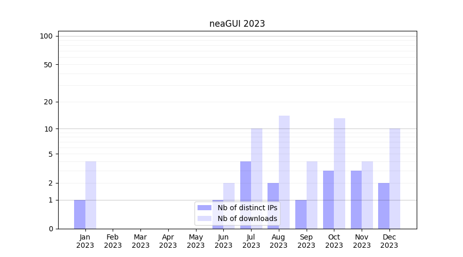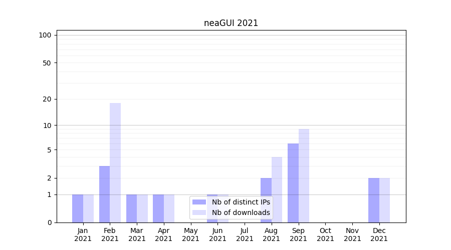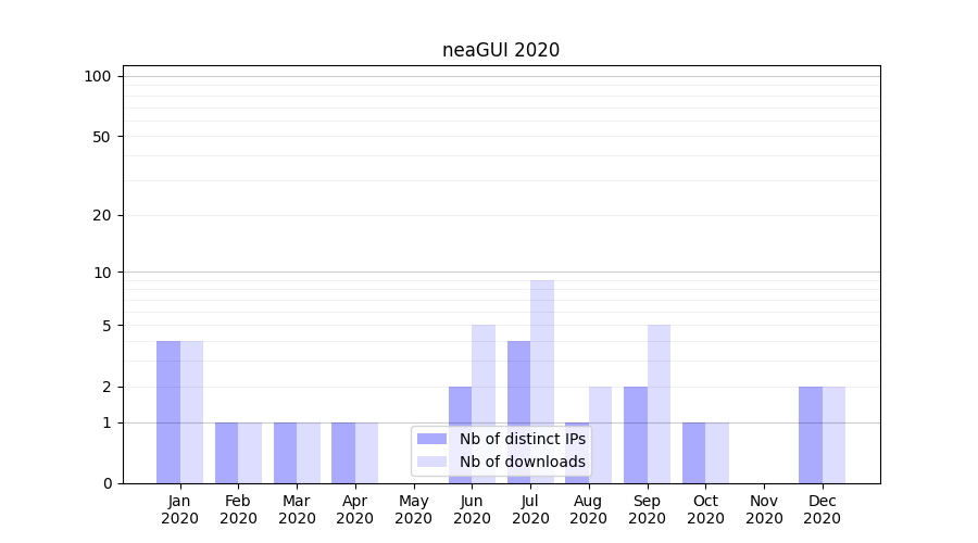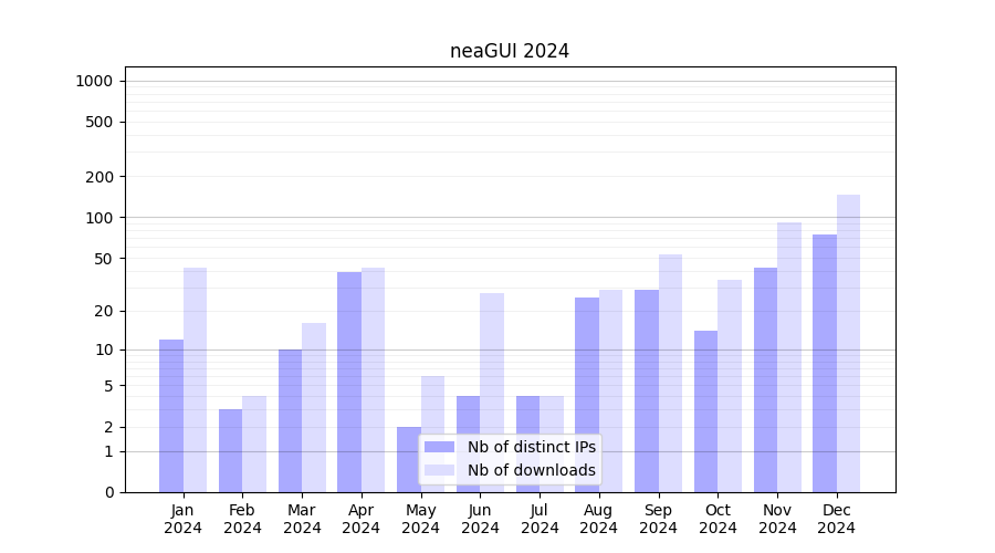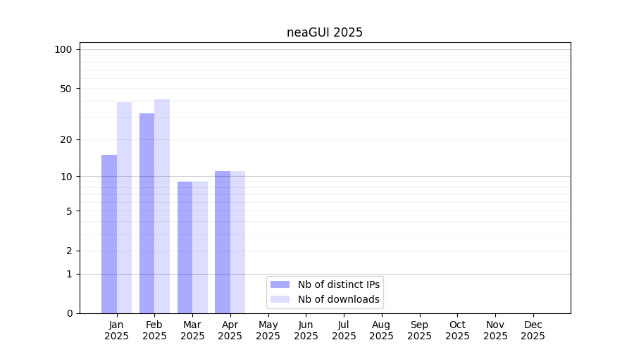 Number of downloads for software package neaGUI, year by year, from 2025 back to 2014 (years with no downloads are omitted):