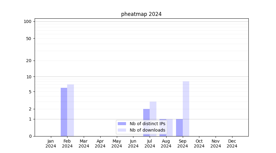 Number of downloads for software package pheatmap, year by year, from 2025 back to 2014 (years with no downloads are omitted):