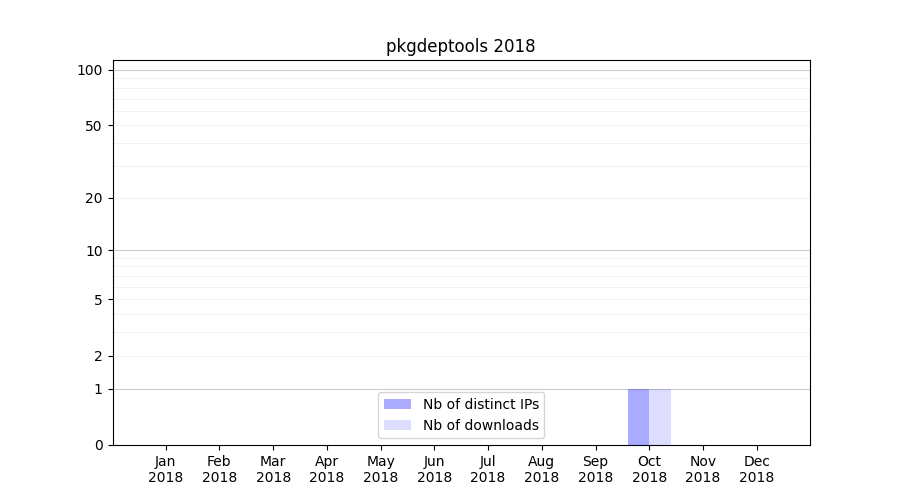 Number of downloads for software package pkgdeptools, year by year, from 2025 back to 2014 (years with no downloads are omitted):