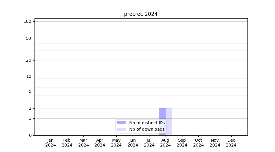 Number of downloads for software package precrec, year by year, from 2025 back to 2014 (years with no downloads are omitted):