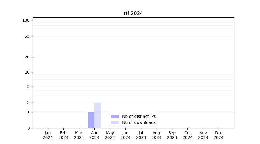 Number of downloads for software package rtf, year by year, from 2025 back to 2014 (years with no downloads are omitted):