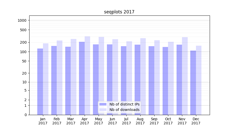 | Month | Nb of distinct IPs | Nb of downloads |