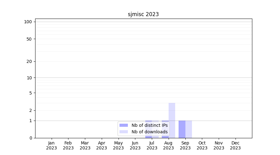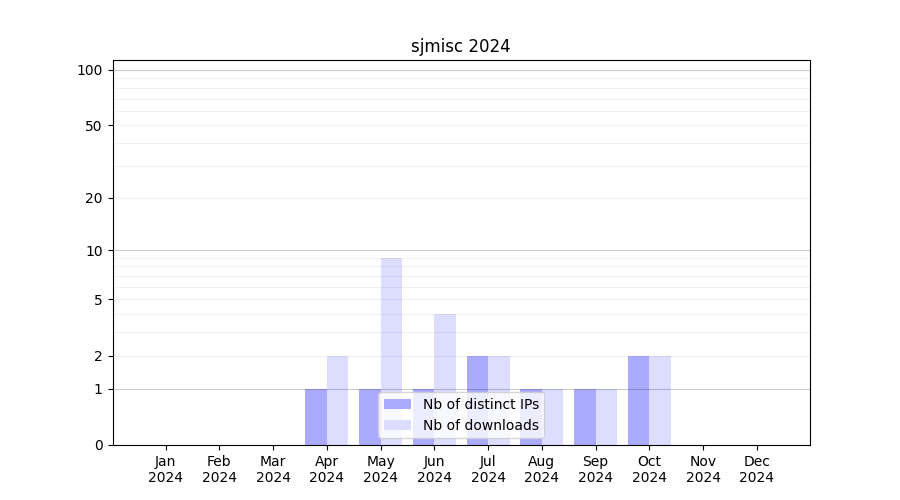 Number of downloads for software package sjmisc, year by year, from 2025 back to 2014 (years with no downloads are omitted):