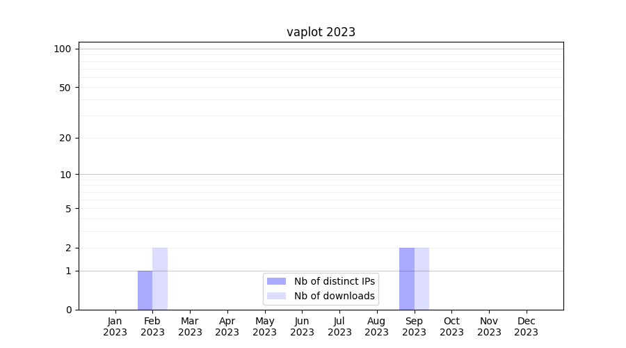 Number of downloads for software package vaplot, year by year, from 2025 back to 2014 (years with no downloads are omitted):