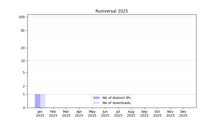 Number of downloads for annotation package Runiversal, year by year, from 2025 back to 2014 (years with no downloads are omitted):