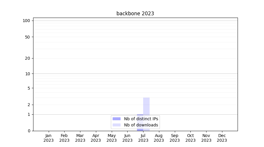 Number of downloads for annotation package backbone, year by year, from 2025 back to 2014 (years with no downloads are omitted):