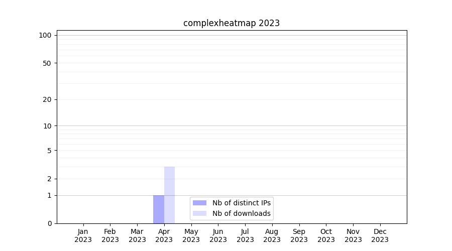 Number of downloads for annotation package complexheatmap, year by year, from 2025 back to 2014 (years with no downloads are omitted):