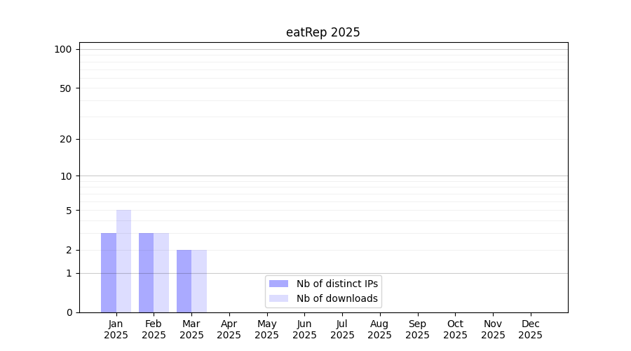 Number of downloads for annotation package eatRep, year by year, from 2025 back to 2014 (years with no downloads are omitted):
