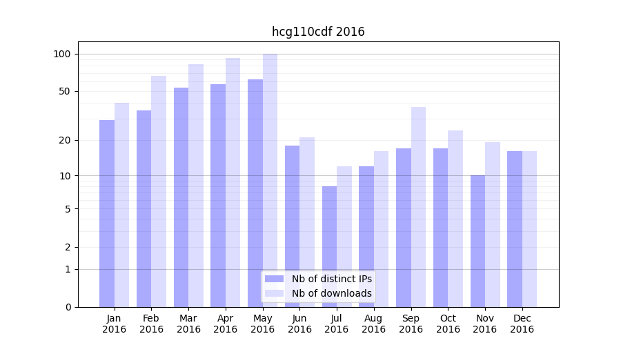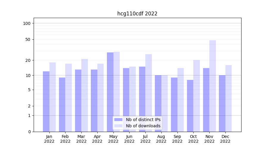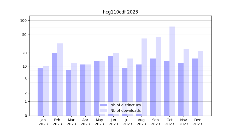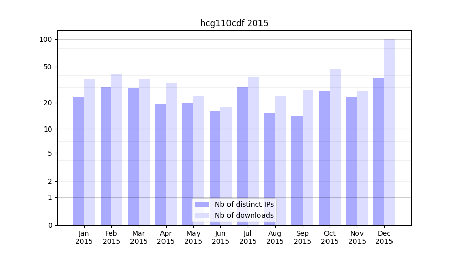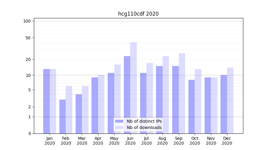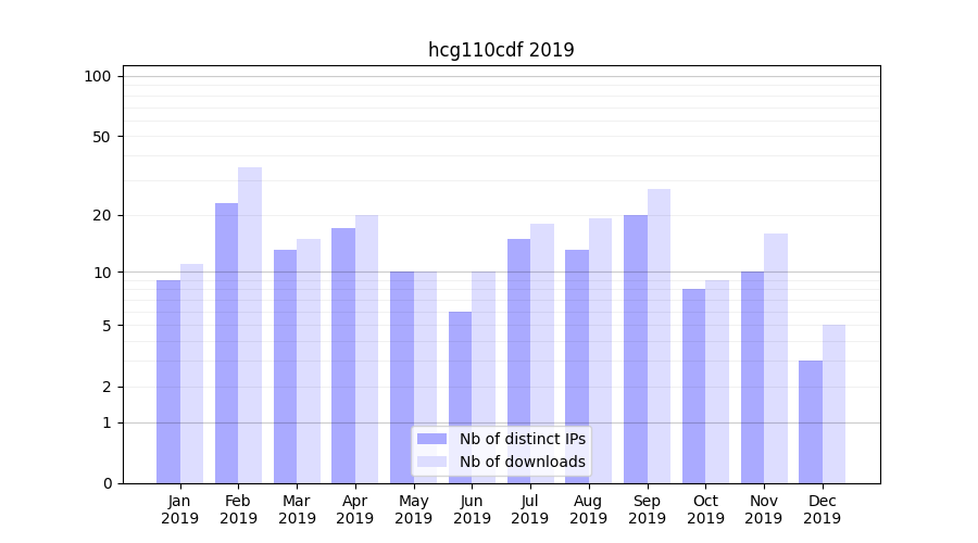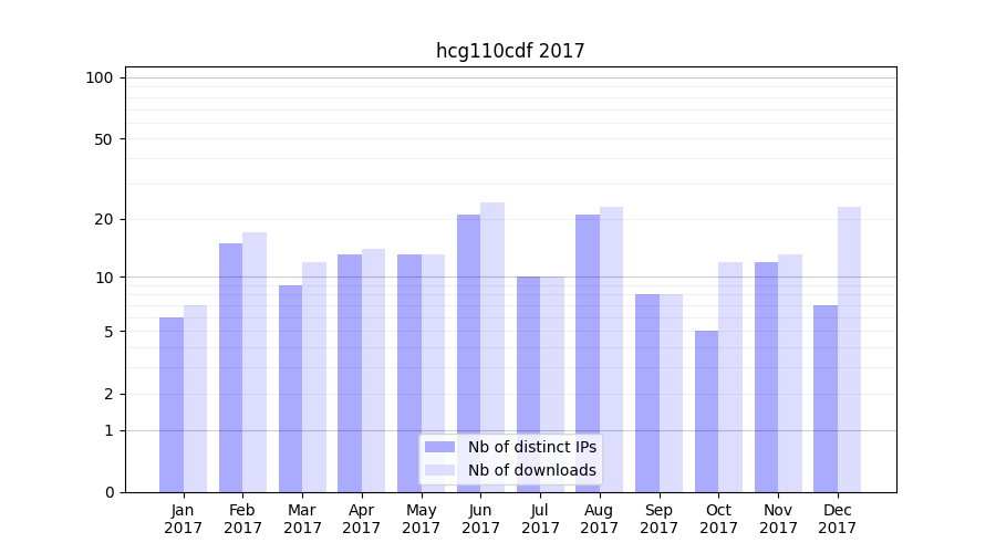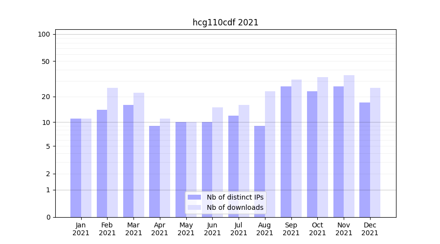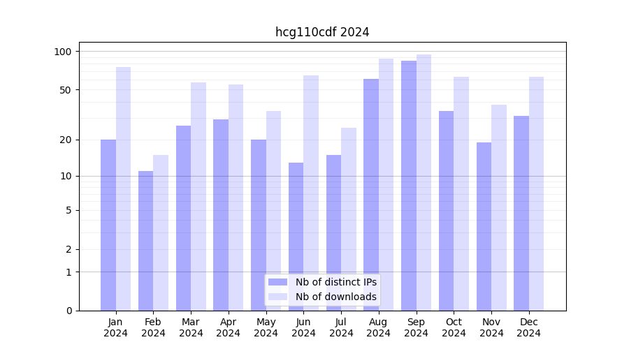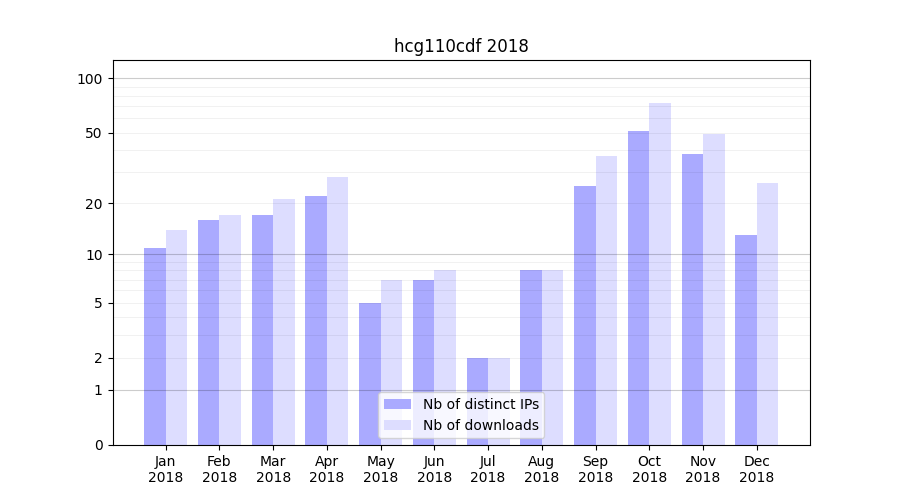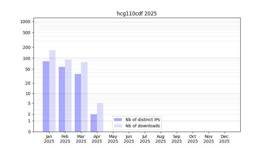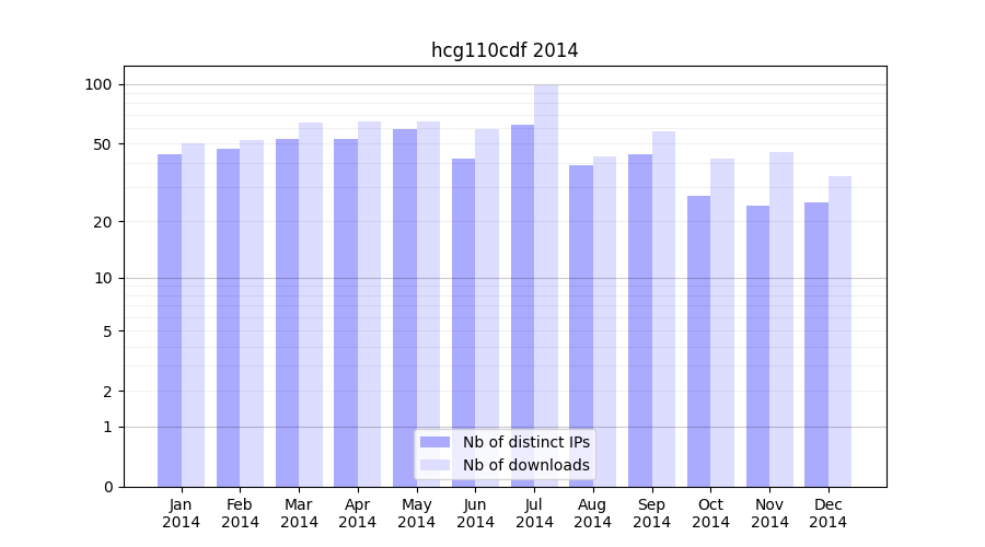 Number of downloads for annotation package hcg110cdf, year by year, from 2025 back to 2014 (years with no downloads are omitted):