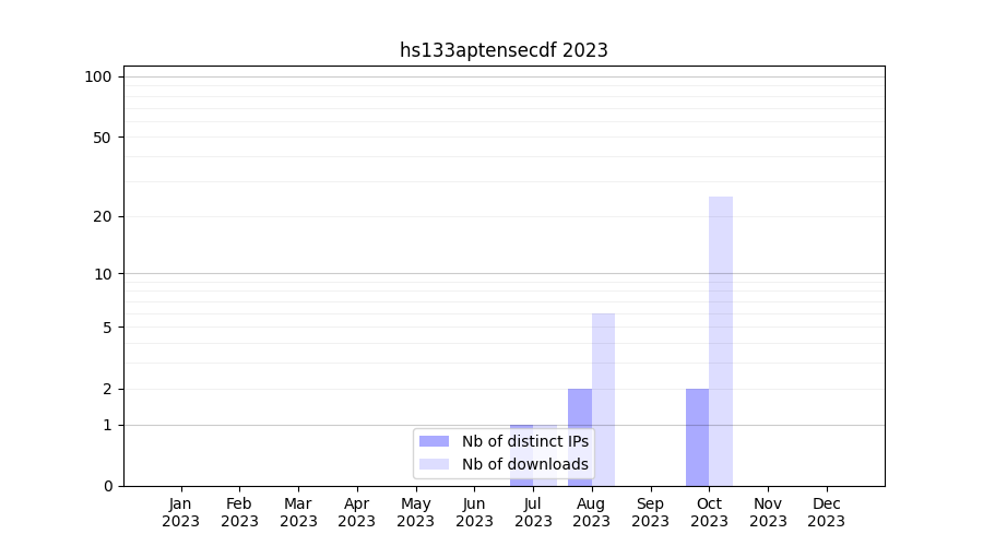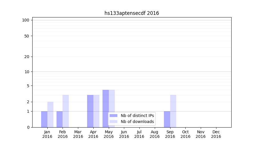 Number of downloads for annotation package hs133aptensecdf, year by year, from 2025 back to 2014 (years with no downloads are omitted):