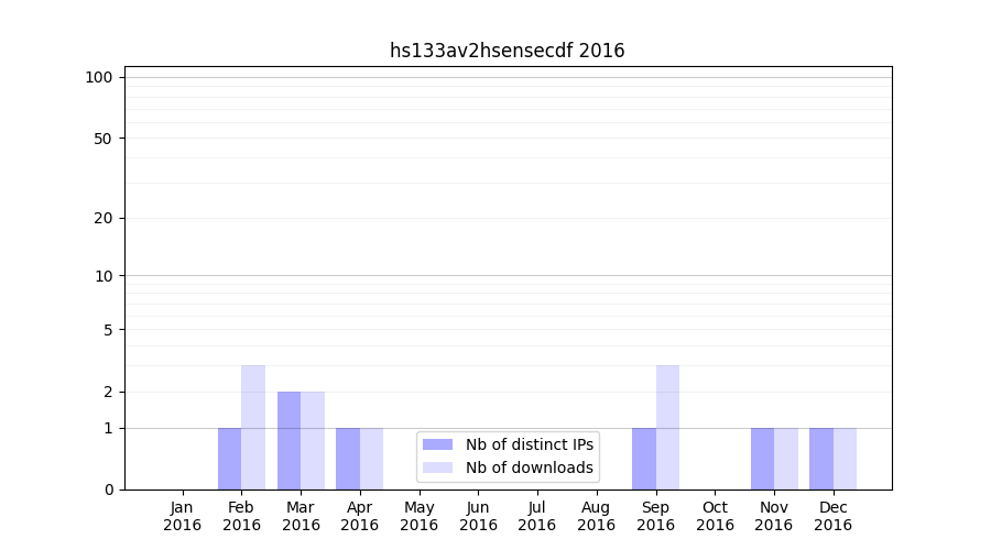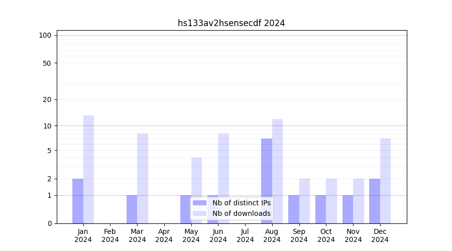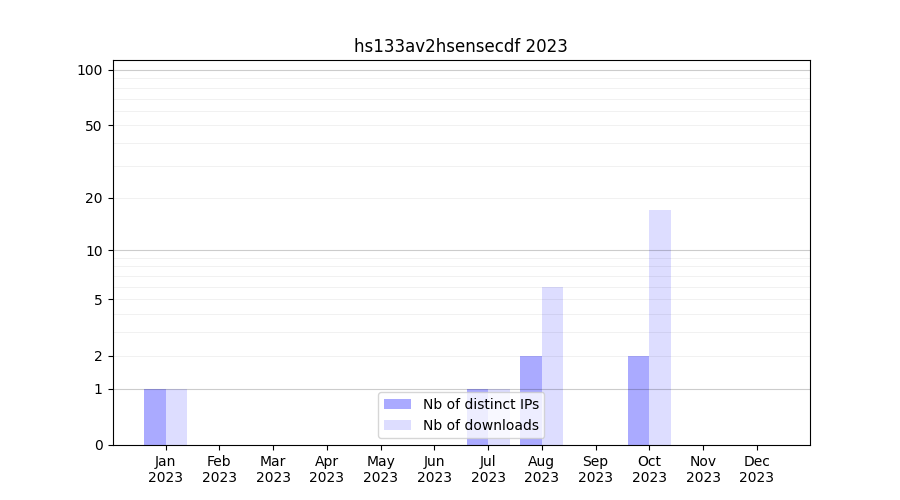 Number of downloads for annotation package hs133av2hsensecdf, year by year, from 2025 back to 2014 (years with no downloads are omitted):