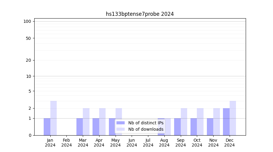 Number of downloads for annotation package hs133bptense7probe, year by year, from 2025 back to 2014 (years with no downloads are omitted):