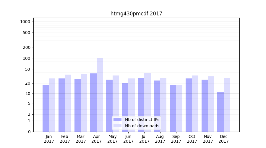 Number of downloads for annotation package htmg430pmcdf, year by year, from 2025 back to 2014 (years with no downloads are omitted):