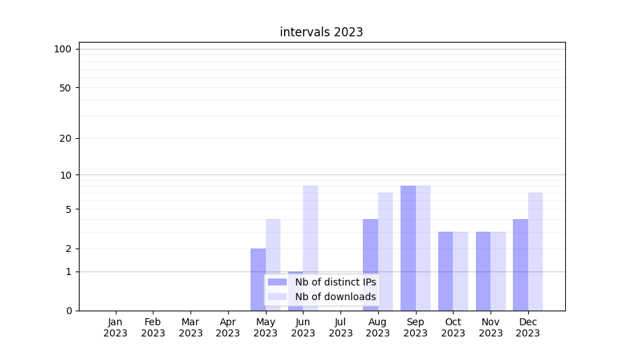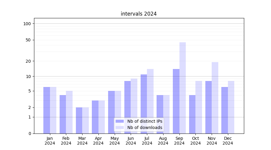 Number of downloads for annotation package intervals, year by year, from 2025 back to 2014 (years with no downloads are omitted):