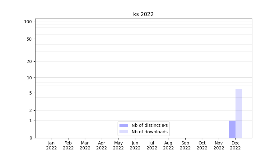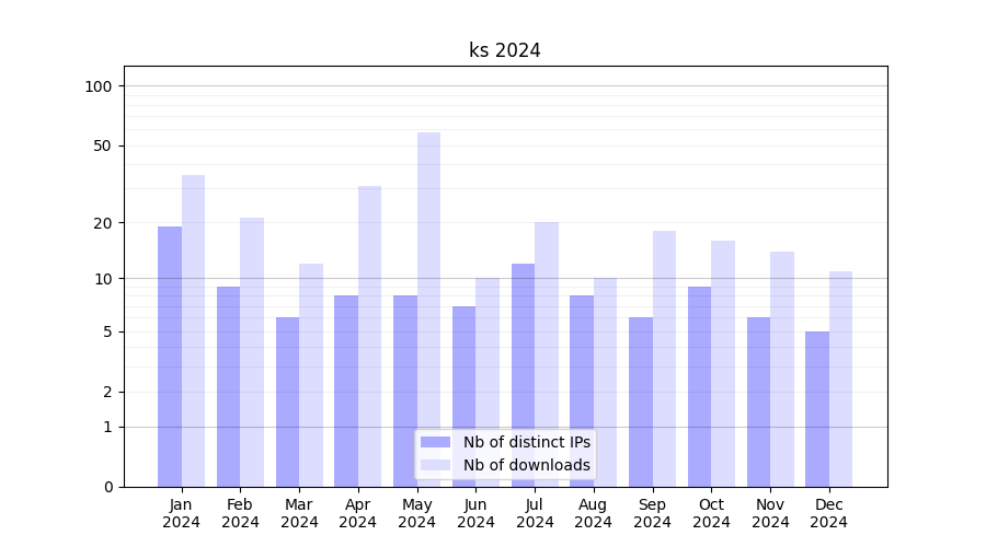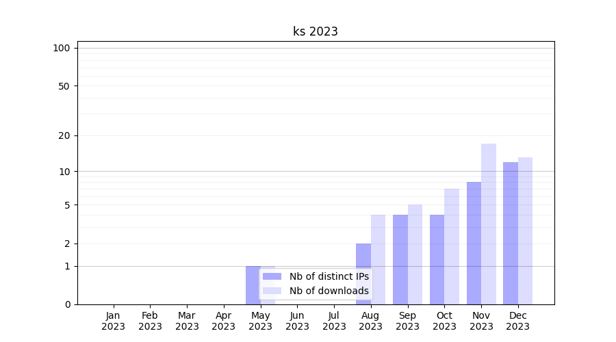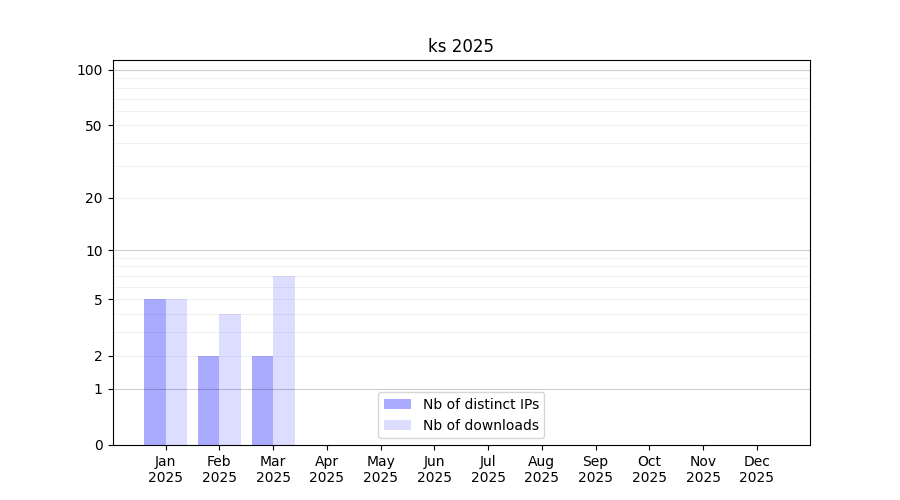 Number of downloads for annotation package ks, year by year, from 2025 back to 2014 (years with no downloads are omitted):