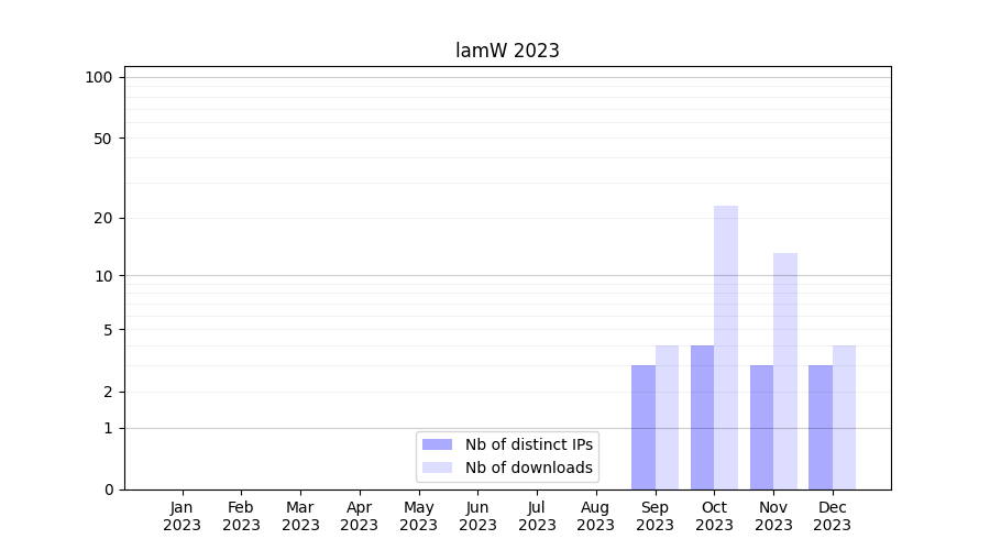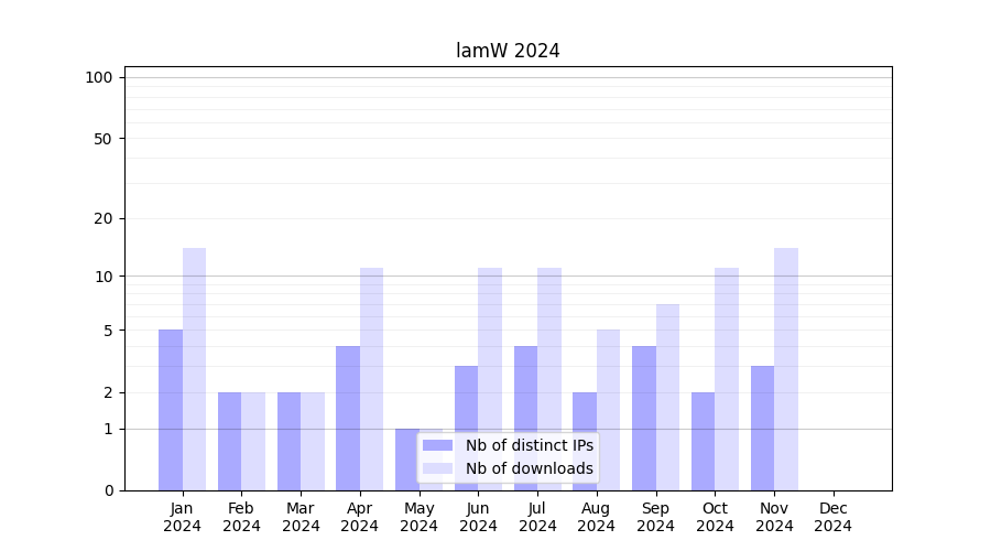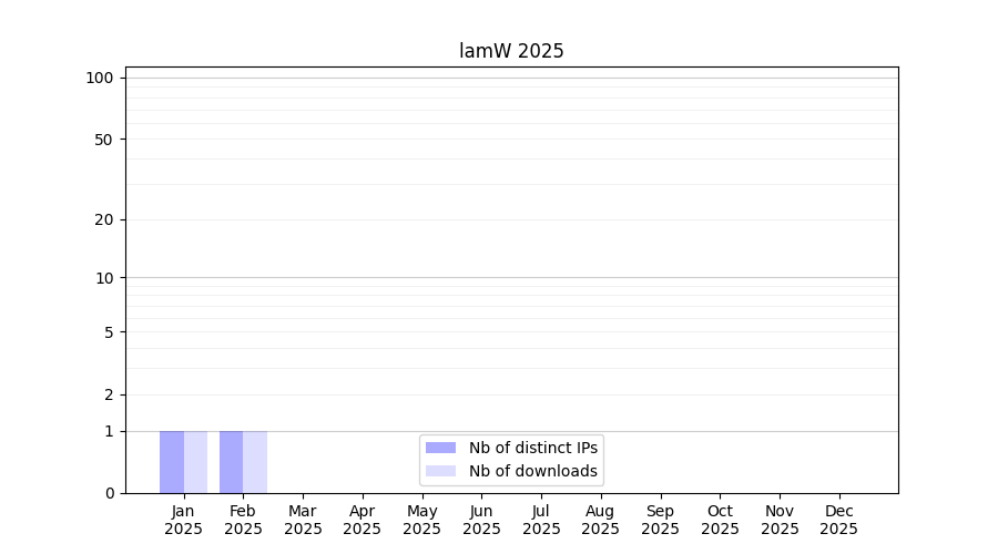 Number of downloads for annotation package lamW, year by year, from 2025 back to 2014 (years with no downloads are omitted):