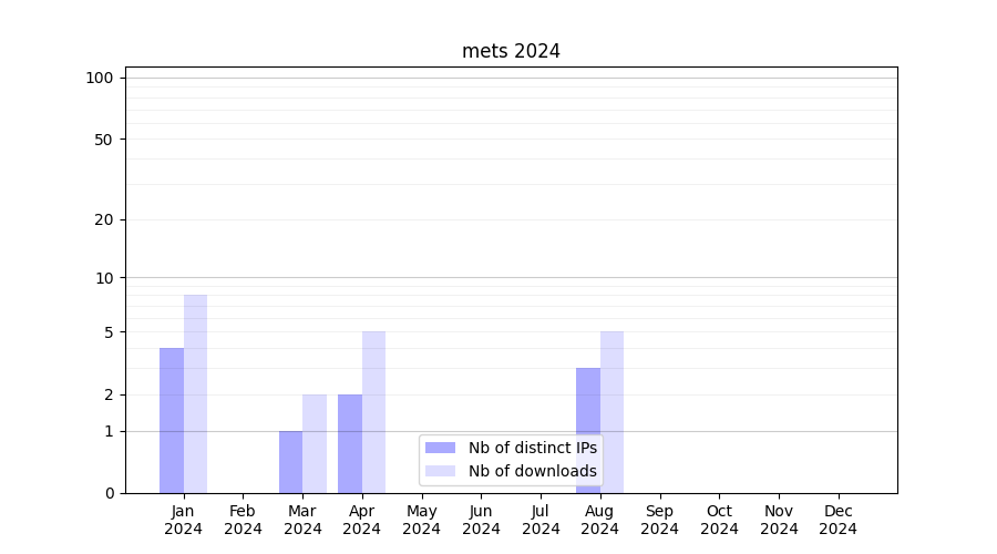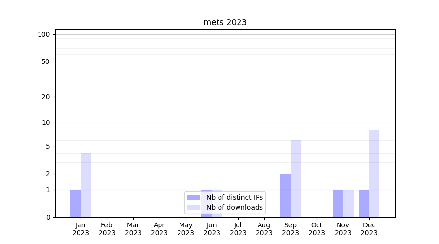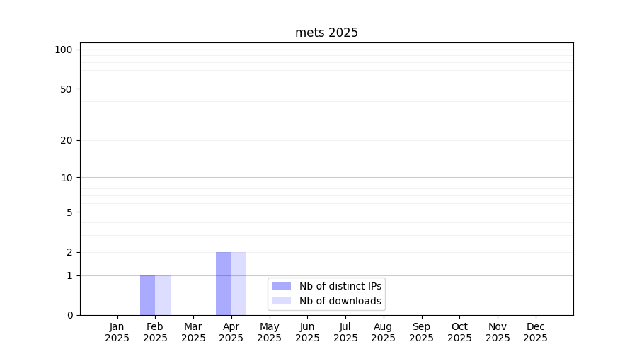 Number of downloads for annotation package mets, year by year, from 2025 back to 2014 (years with no downloads are omitted):