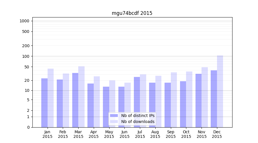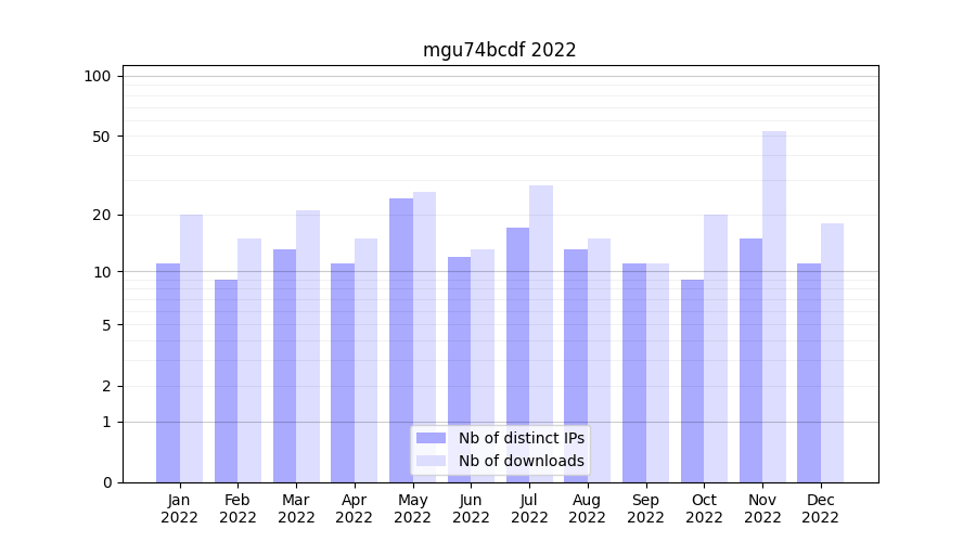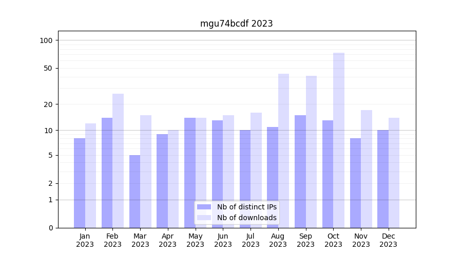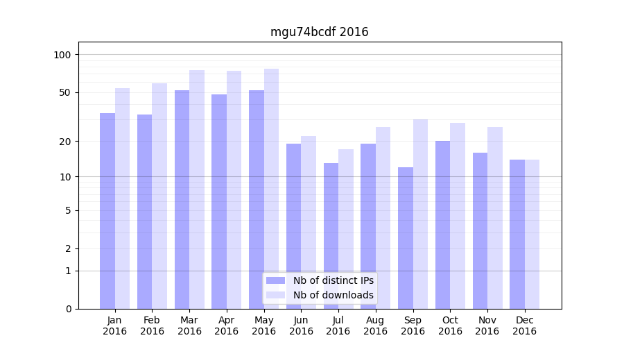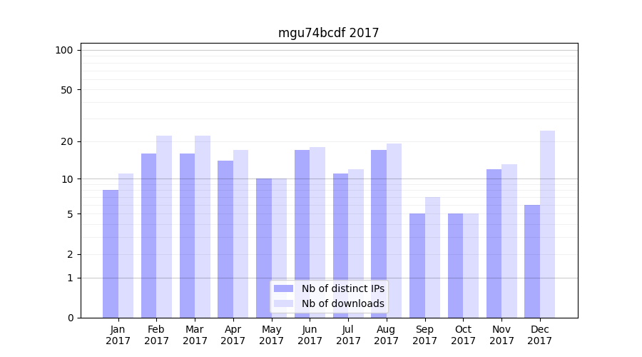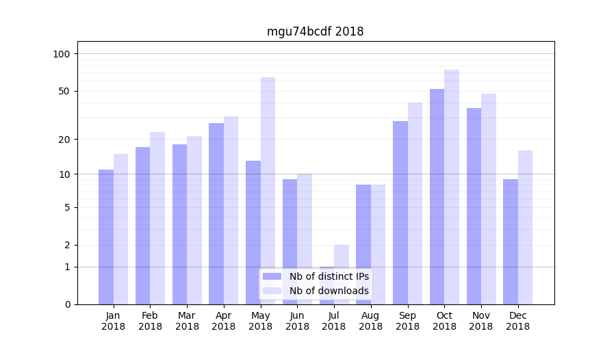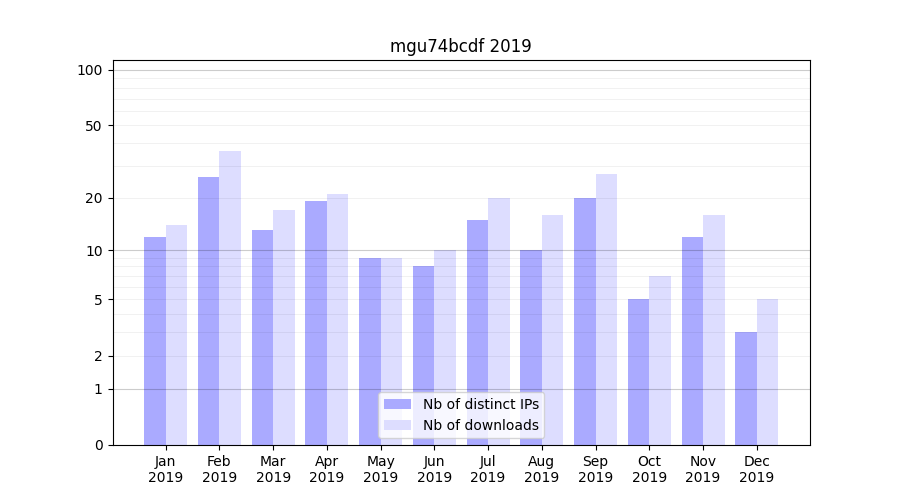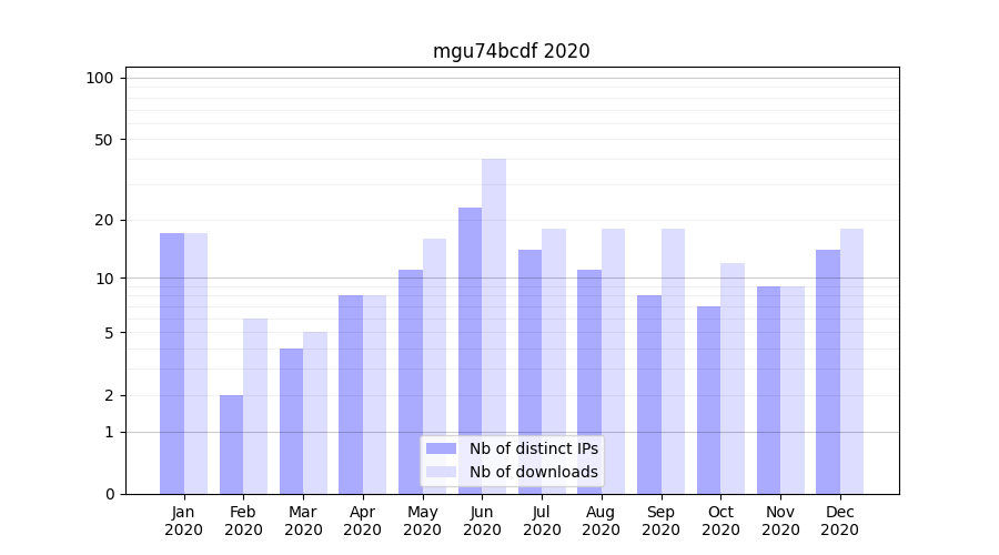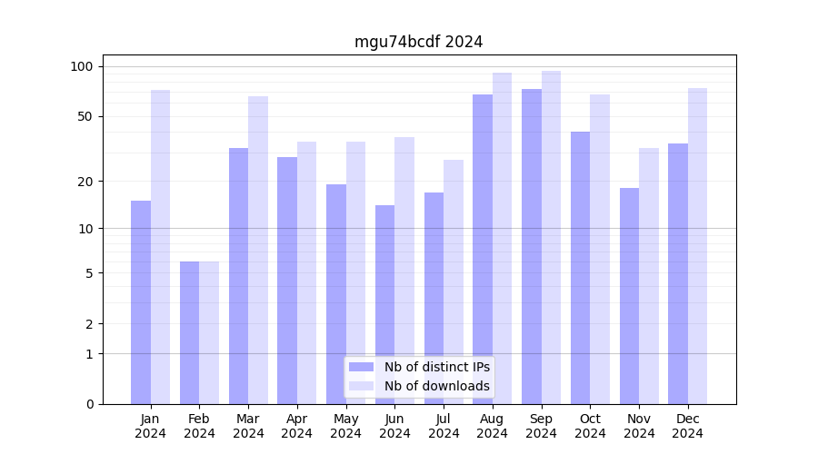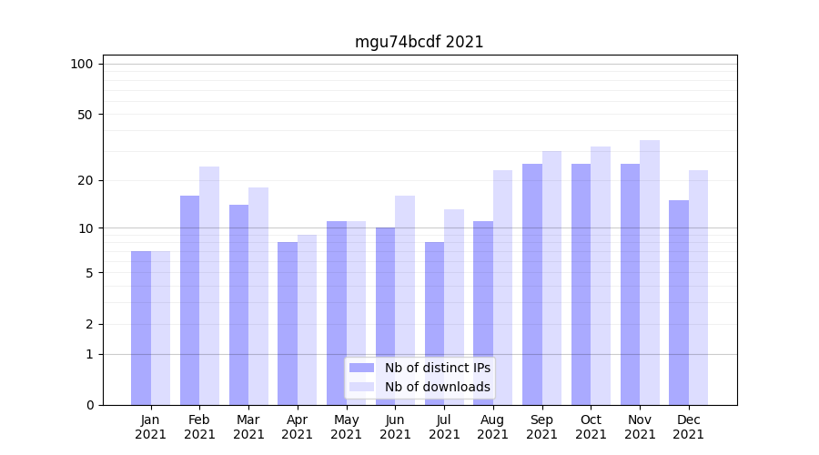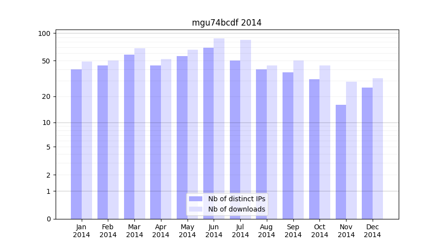 Number of downloads for annotation package mgu74bcdf, year by year, from 2025 back to 2014 (years with no downloads are omitted):