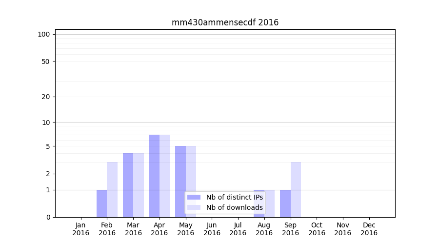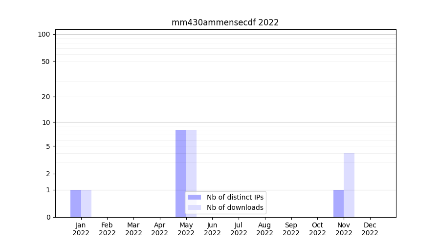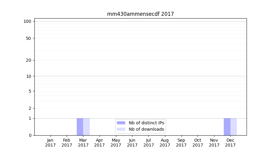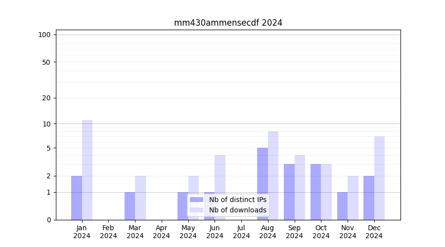 Number of downloads for annotation package mm430ammensecdf, year by year, from 2025 back to 2014 (years with no downloads are omitted):