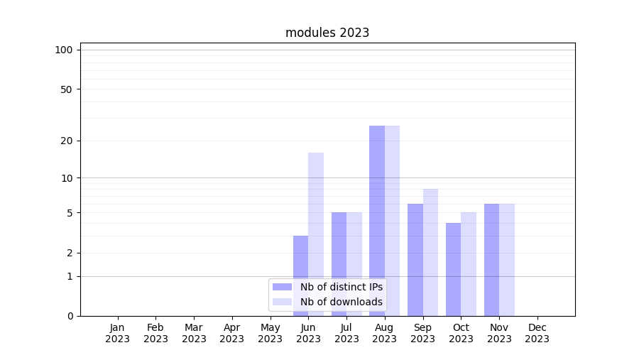 | Month | Nb of distinct IPs | Nb of downloads |