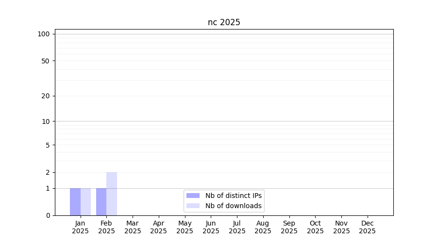 Number of downloads for annotation package nc, year by year, from 2025 back to 2014 (years with no downloads are omitted):