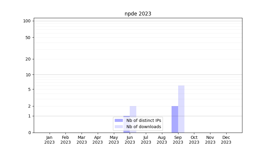 Number of downloads for annotation package npde, year by year, from 2025 back to 2014 (years with no downloads are omitted):