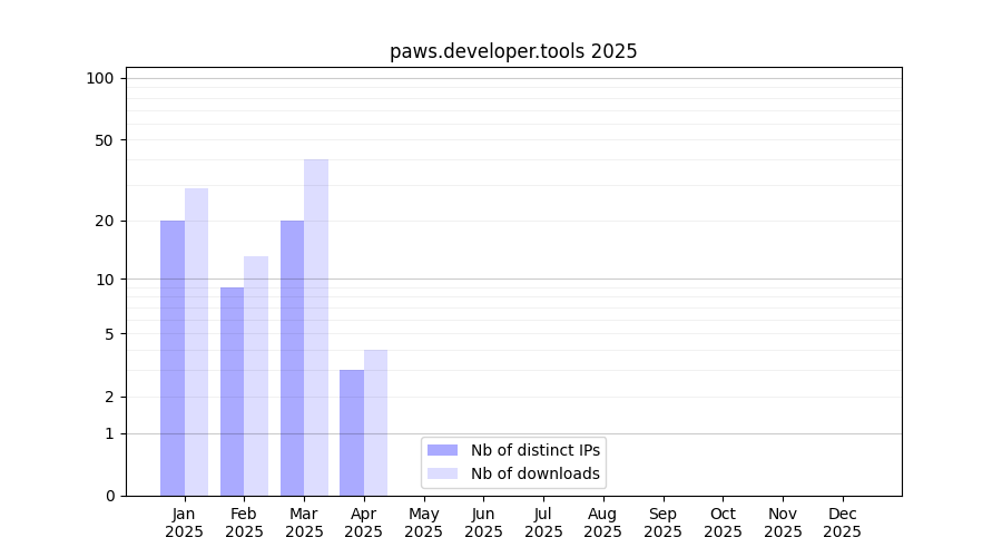 Number of downloads for annotation package paws.developer.tools, year by year, from 2025 back to 2014 (years with no downloads are omitted):