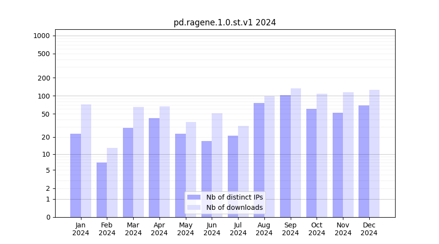 Month | Nb of distinct IPs | Nb of downloads |