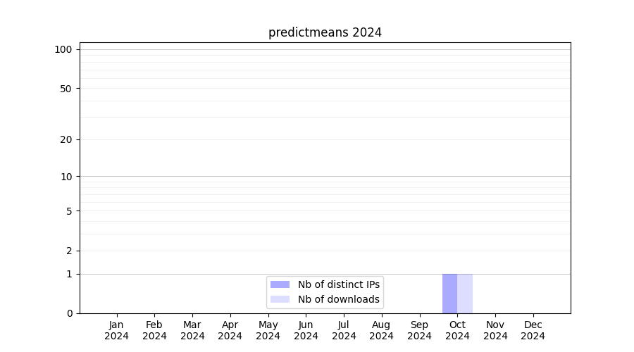 Number of downloads for annotation package predictmeans, year by year, from 2025 back to 2014 (years with no downloads are omitted):