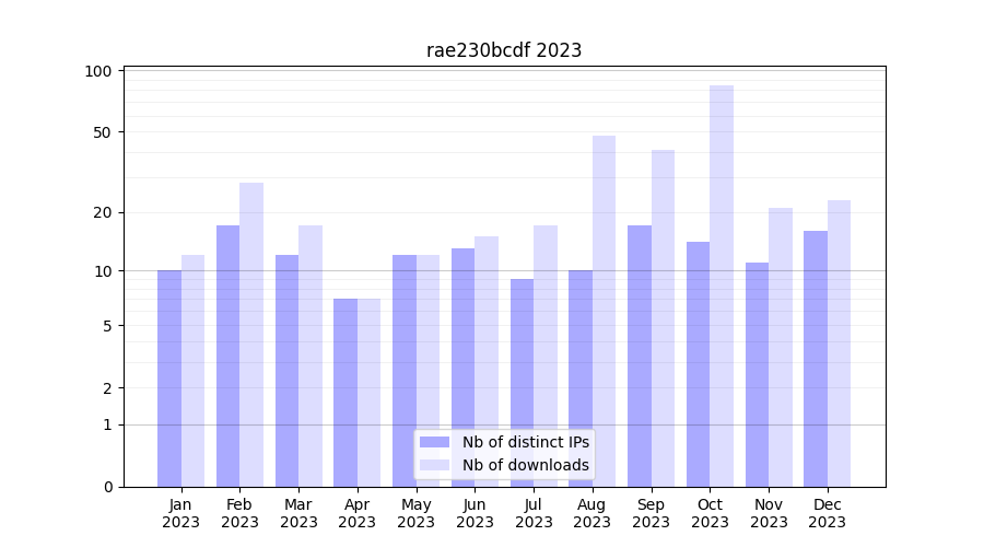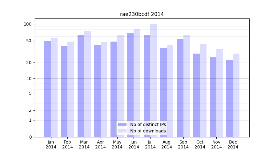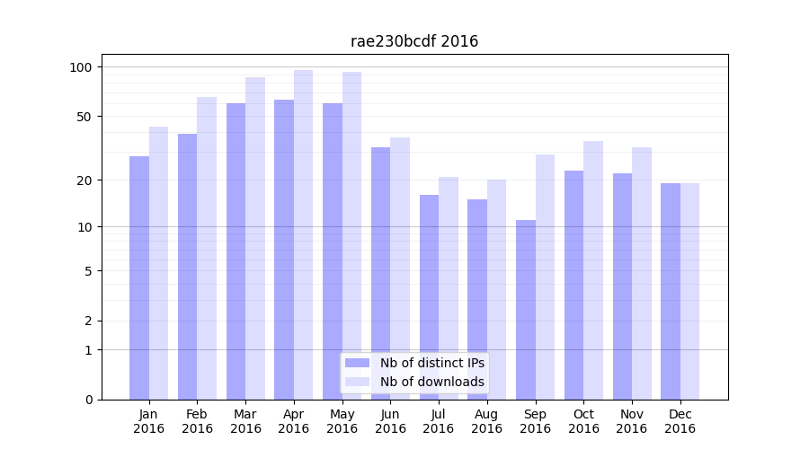 | Month | Nb of distinct IPs | Nb of downloads |