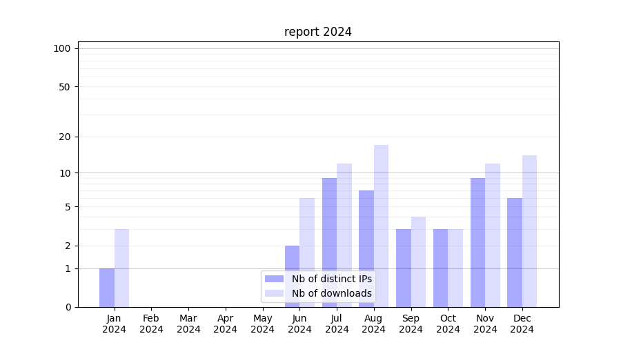 | Month | Nb of distinct IPs | Nb of downloads |