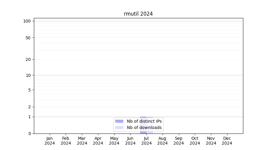 Number of downloads for annotation package rmutil, year by year, from 2025 back to 2014 (years with no downloads are omitted):