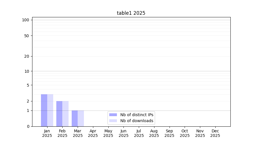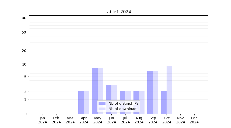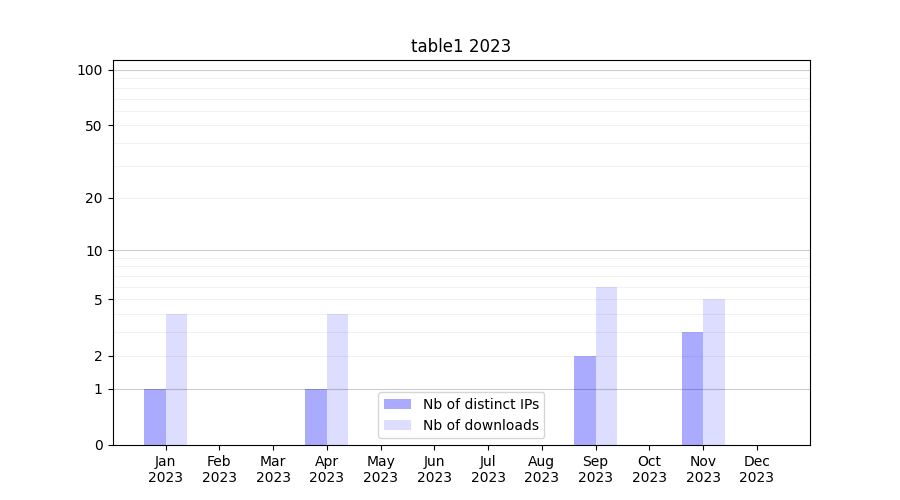 | Month | Nb of distinct IPs | Nb of downloads |