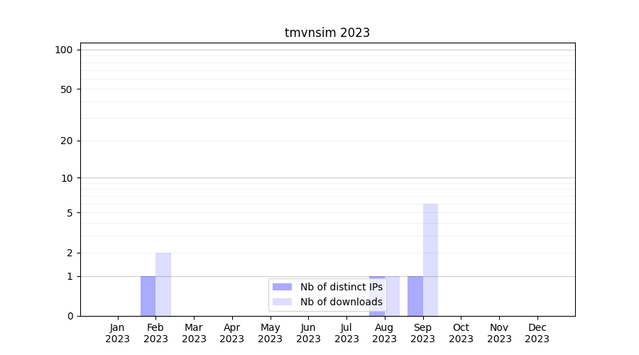Number of downloads for annotation package tmvnsim, year by year, from 2025 back to 2014 (years with no downloads are omitted):