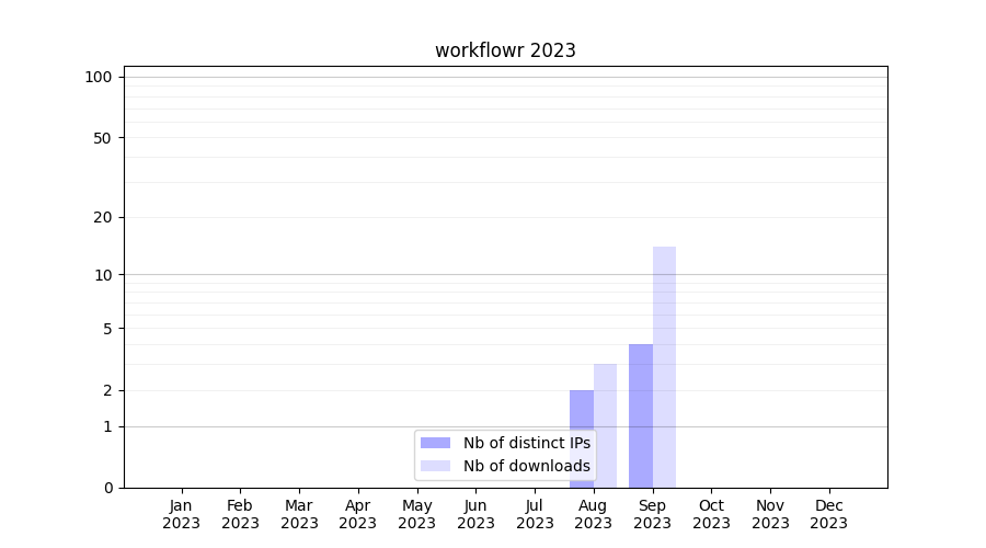 Number of downloads for annotation package workflowr, year by year, from 2025 back to 2014 (years with no downloads are omitted):