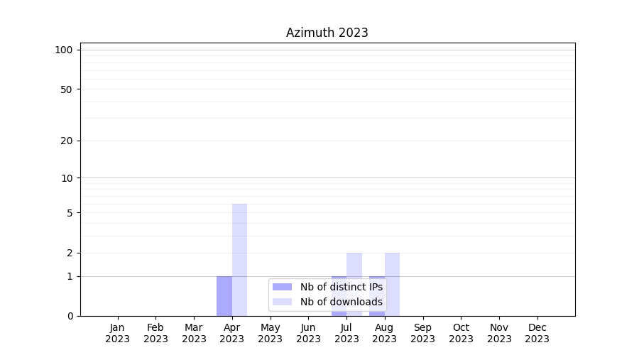 Number of downloads for experiment package Azimuth, year by year, from 2025 back to 2014 (years with no downloads are omitted):