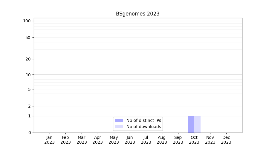 Number of downloads for experiment package BSgenomes, year by year, from 2025 back to 2014 (years with no downloads are omitted):