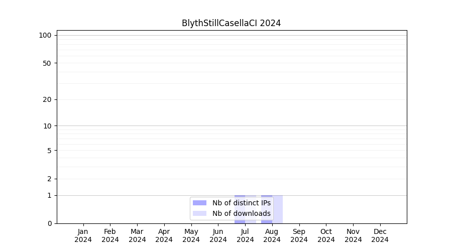 Number of downloads for experiment package BlythStillCasellaCI, year by year, from 2025 back to 2014 (years with no downloads are omitted):