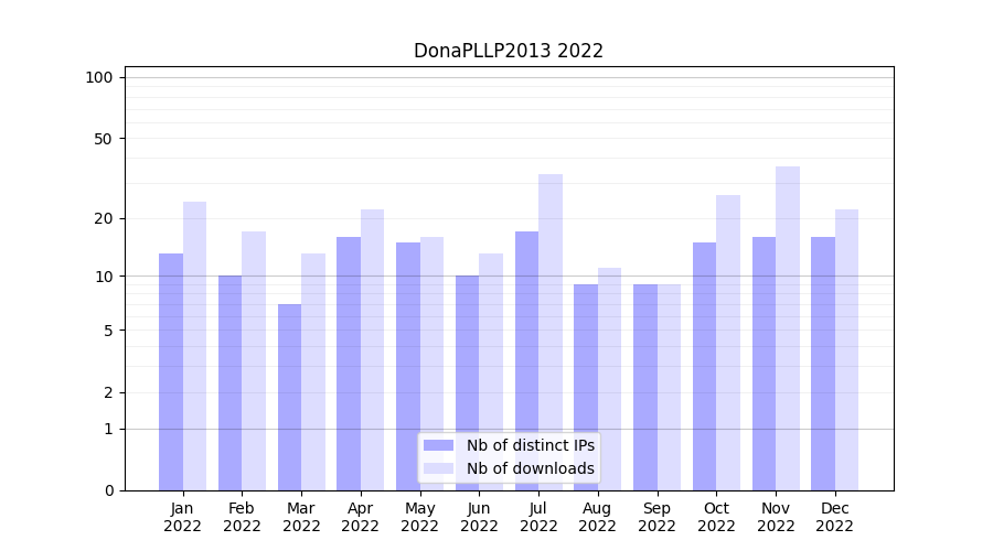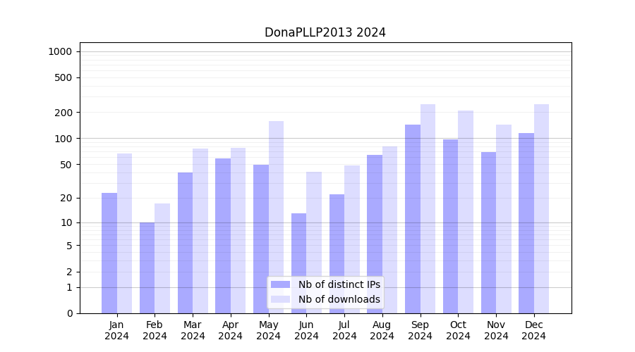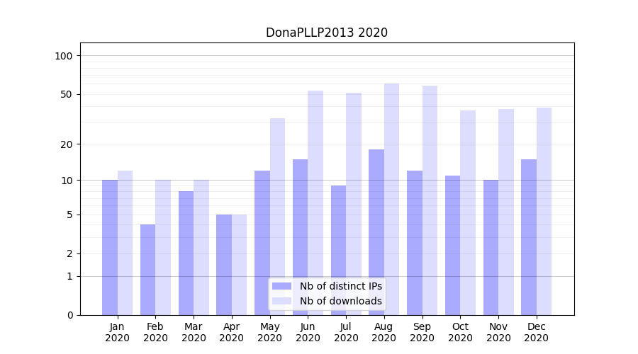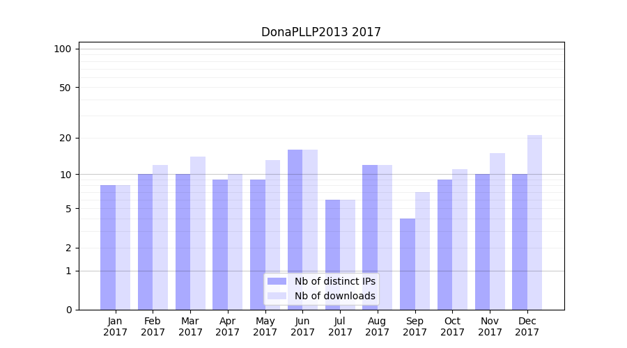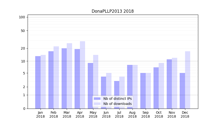 Number of downloads for experiment package DonaPLLP2013, year by year, from 2025 back to 2014 (years with no downloads are omitted):