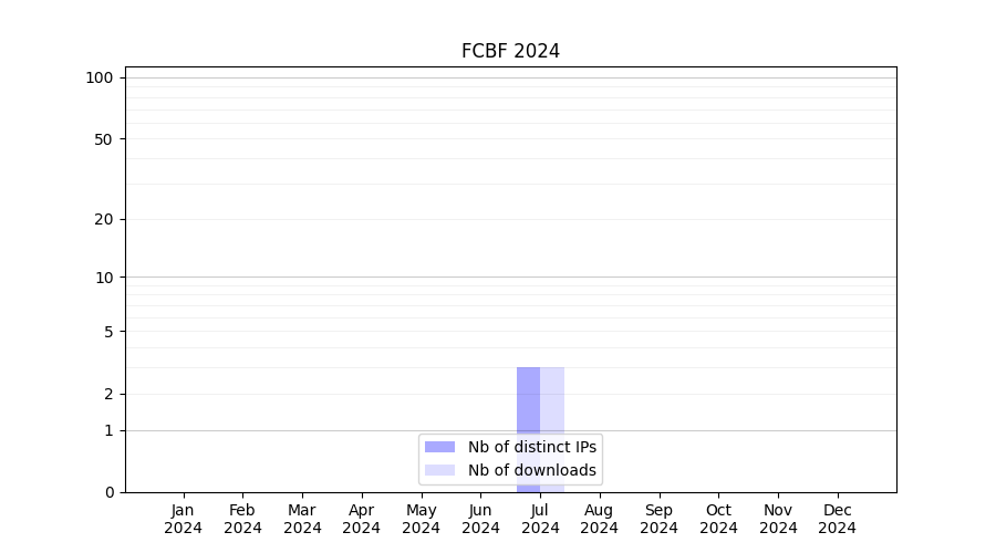 Number of downloads for experiment package FCBF, year by year, from 2025 back to 2014 (years with no downloads are omitted):