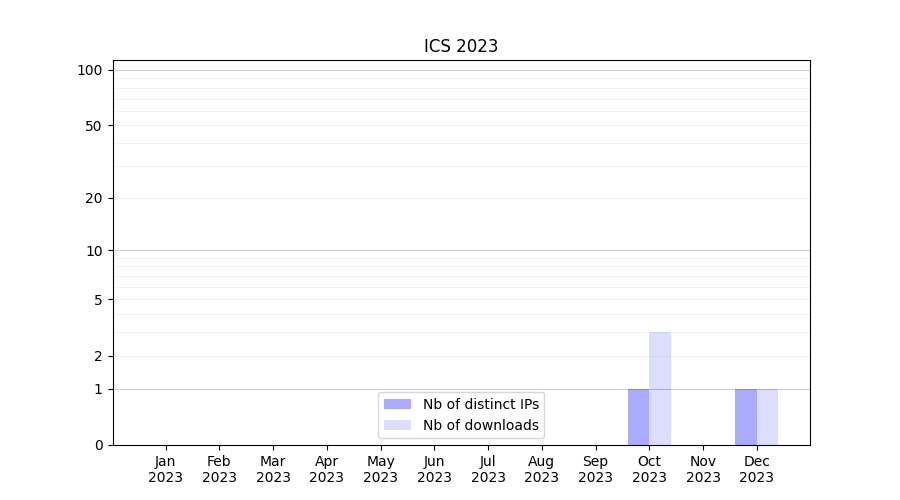Number of downloads for experiment package ICS, year by year, from 2025 back to 2014 (years with no downloads are omitted):