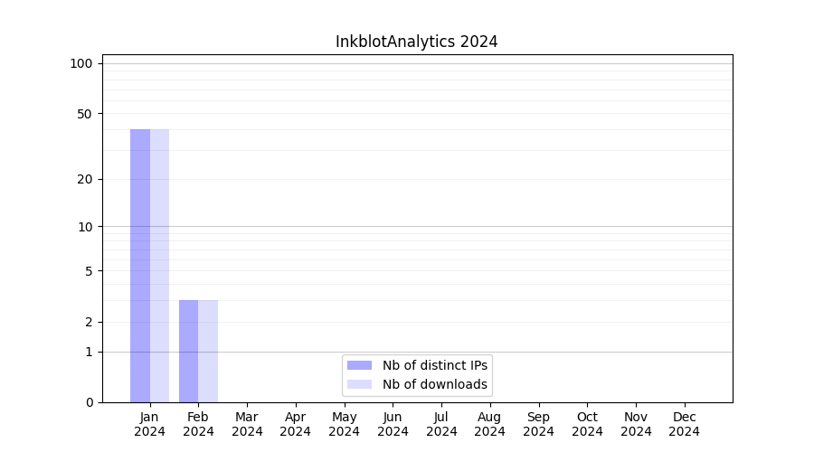 Number of downloads for experiment package InkblotAnalytics, year by year, from 2025 back to 2014 (years with no downloads are omitted):