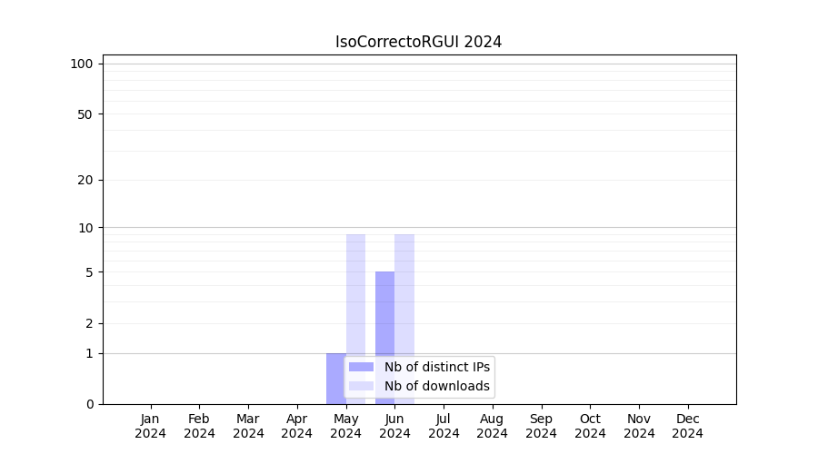 Number of downloads for experiment package IsoCorrectoRGUI, year by year, from 2025 back to 2014 (years with no downloads are omitted):