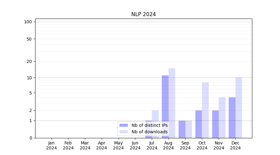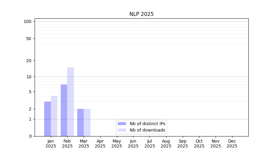 Number of downloads for experiment package NLP, year by year, from 2025 back to 2014 (years with no downloads are omitted):