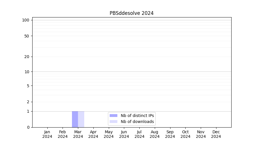Number of downloads for experiment package PBSddesolve, year by year, from 2025 back to 2014 (years with no downloads are omitted):