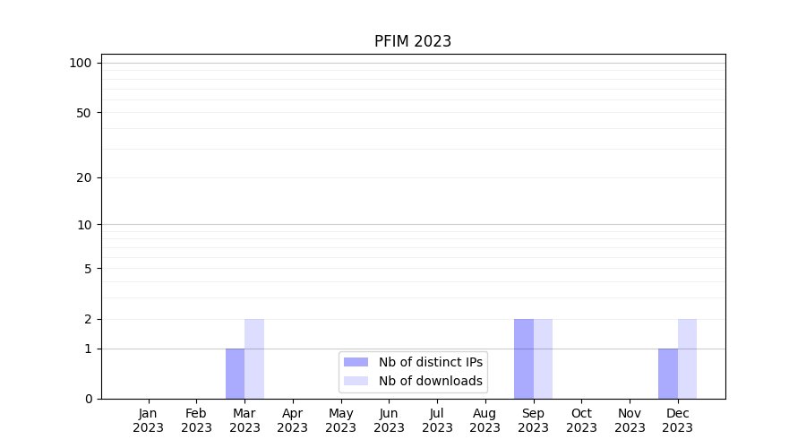 Number of downloads for experiment package PFIM, year by year, from 2025 back to 2014 (years with no downloads are omitted):