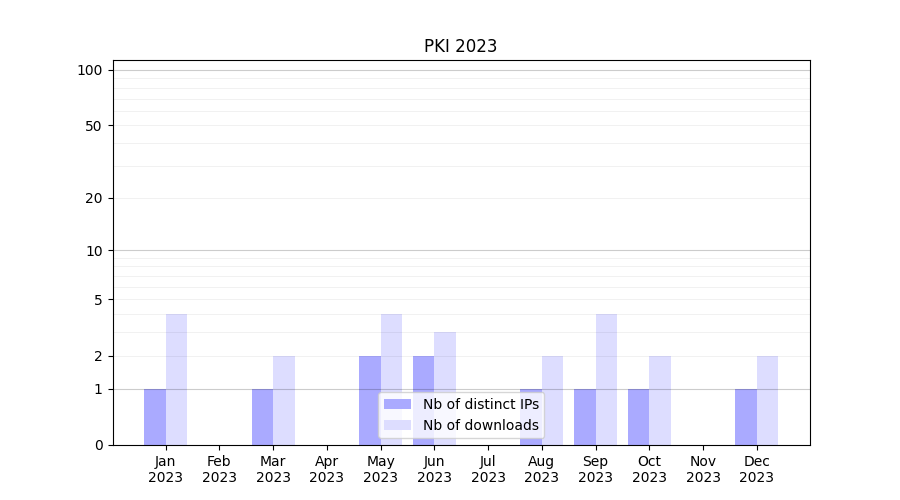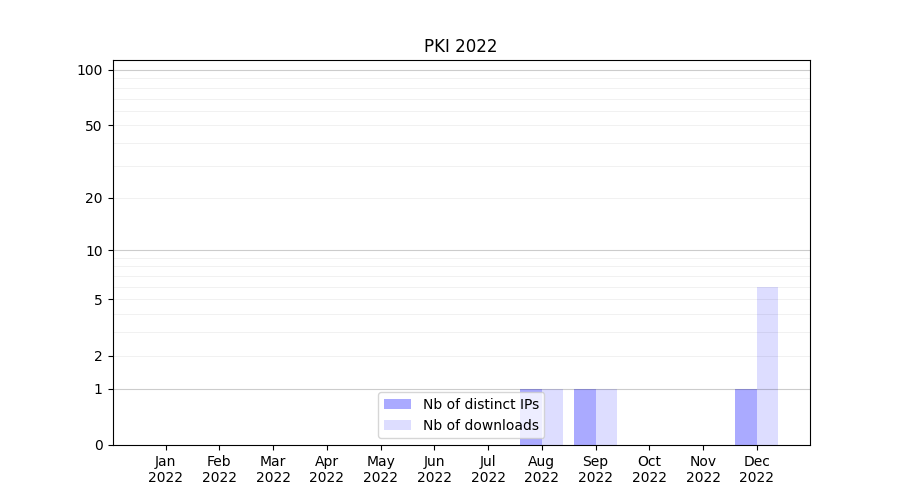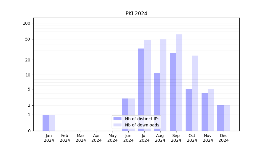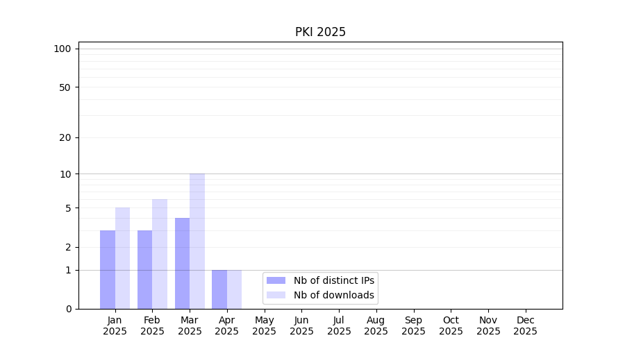 Number of downloads for experiment package PKI, year by year, from 2025 back to 2014 (years with no downloads are omitted):